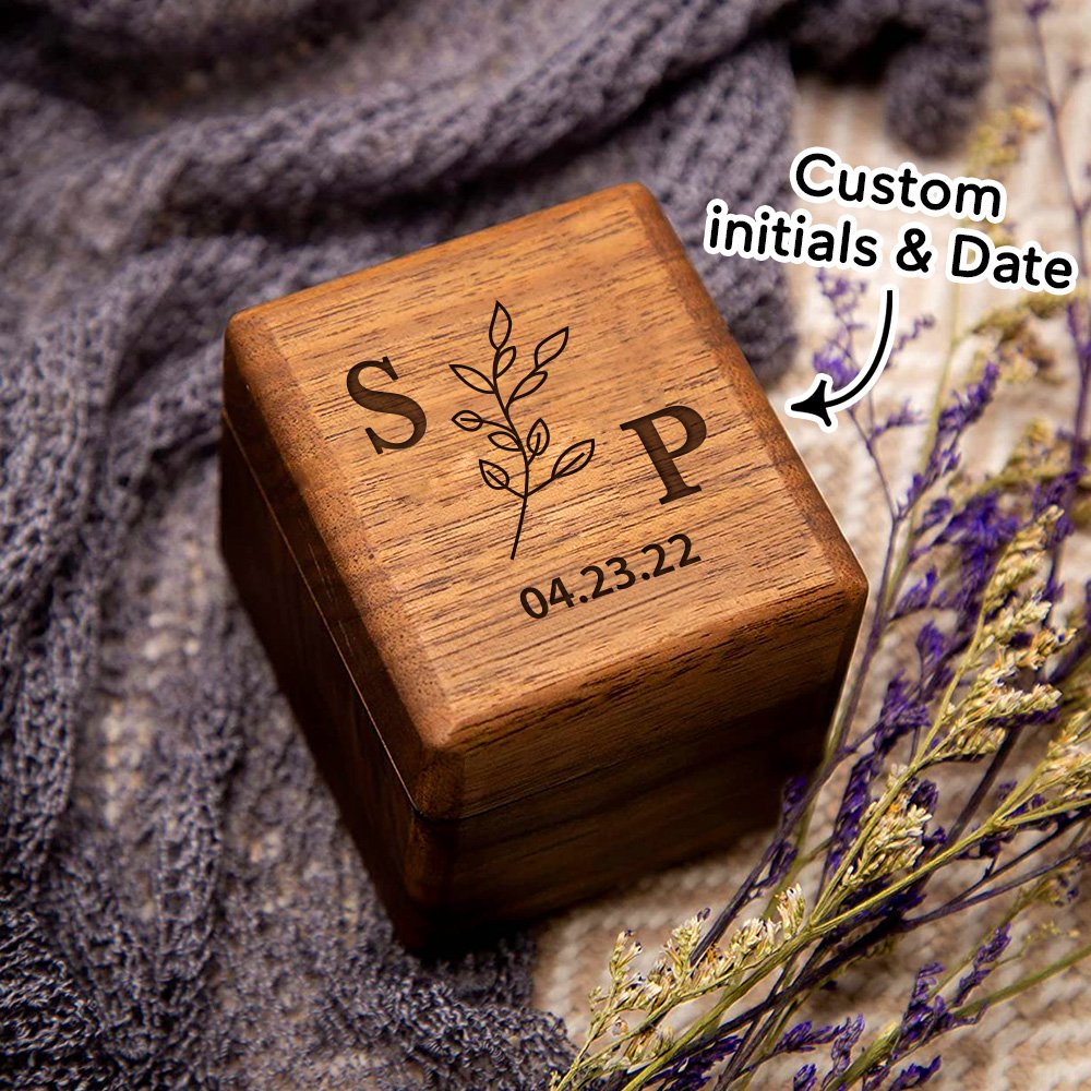 Create an unforgettable moment with this personalized wooden ring box, crafted for proposals, engagements, or storing multiple rings in timeless style. Made from high-quality walnut or acacia wood, it features a smooth, burr-free finish and a secure magnetic closure. Personalize it with a name and date to turn this elegant piece into a cherished keepsake 💍🌲
