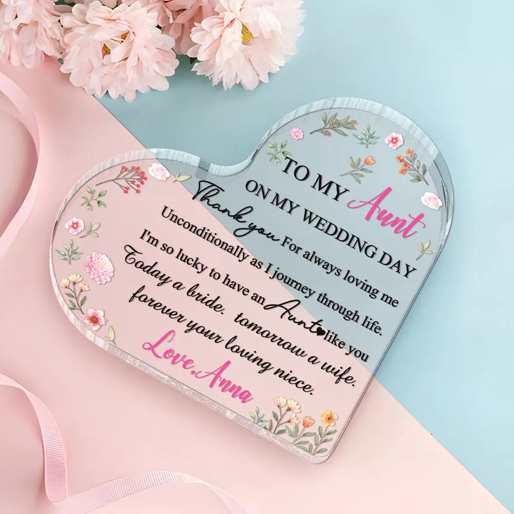 Wedding Gift | Personalized Aunt of the Bride Heart Acrylic Plaque | Custom Wedding Gift for Auntie from Bride