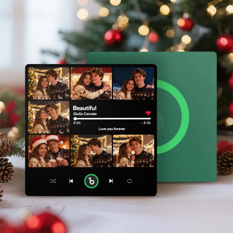 Celebrate the season with this Fridge Magnet Christmas Frameless FridgeBeats 7 Photos Music Pro – a modern holiday keepsake that pairs seven cherished photos with a meaningful song. A sleek and festive way to fill your fridge with joyful memories and music.