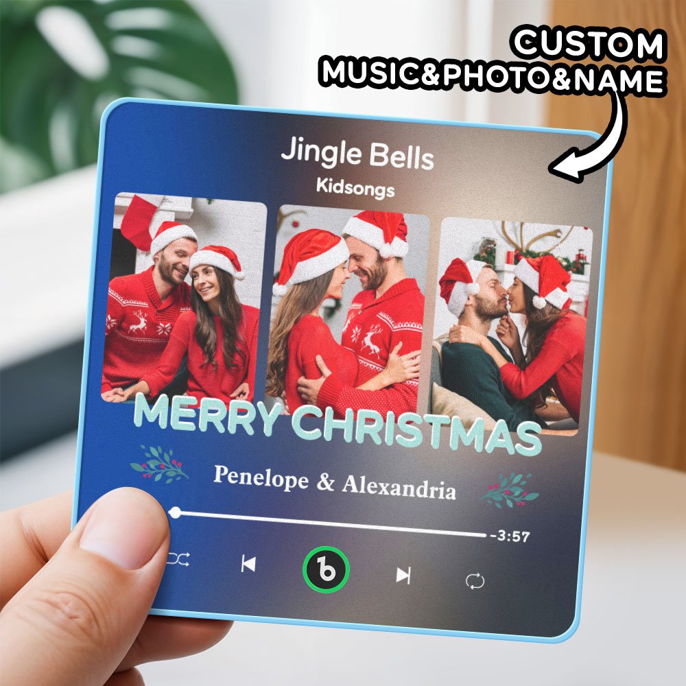 Celebrate your favorite holiday moments with this Fridge Magnet Christmas Framed FridgeBeats 4.0 3 Photos Music Pro – a festive keepsake that blends three cherished photos with a special song in a premium framed design. A perfect way to spread Christmas cheer through music and memories.