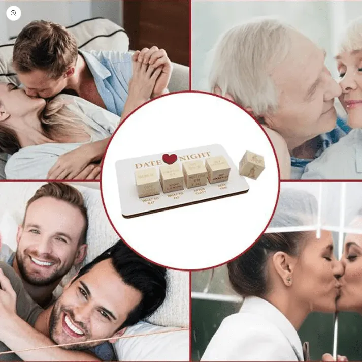 • 🎲 Funny couple dice game design crafted from wood, featuring playful prompts that spark laughter, bonding, and shared moments